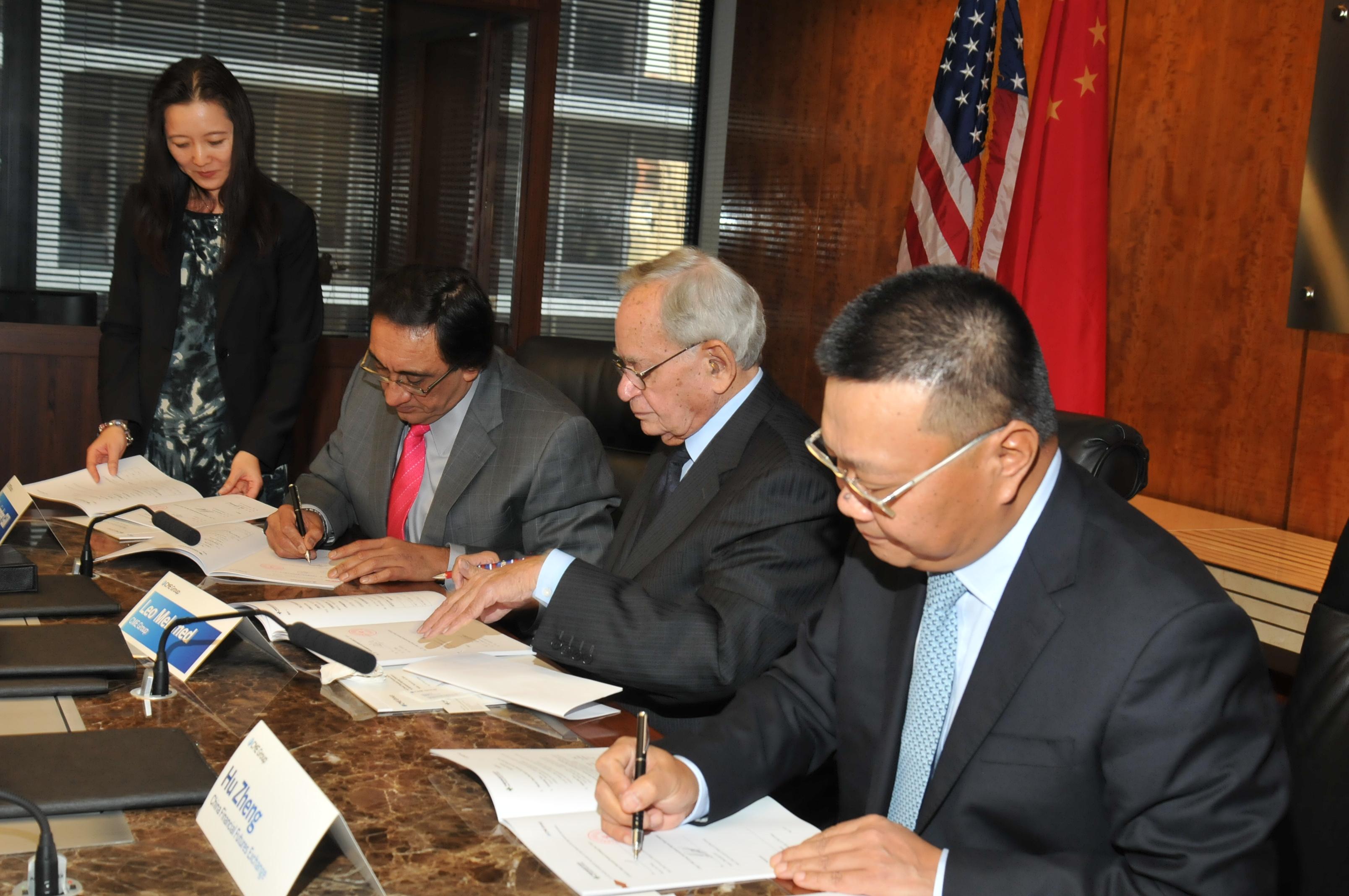 我所与芝加哥商业交易所(芝商所)于2014年9月24日在芝加哥签署《行情互换合作协议》。根据该协议,双方将共享行情信息,中金所授权芝商所作为其市场数据在中国大陆以外发布及授权的海外代理机构。